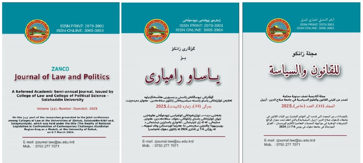 On the Second part of the researches presented to the joint conference among Colleges of Law at the Universities of (Dohuk, Salahaddin-Erbil and, Sulaymaniyah), which was held under the title (The Reality of National Legislation in Confrontation of Contemporary Challenges (Kurdistan Region-Iraq as a Model), at the University of Dohuk, on 6-7 March 2024.